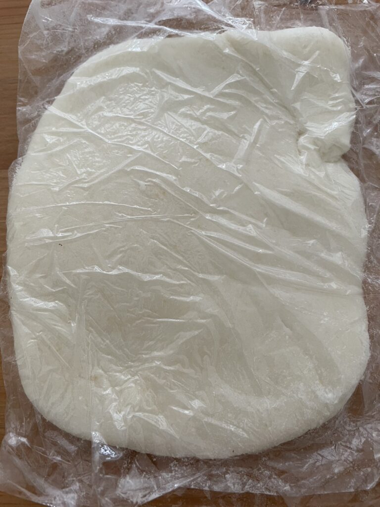 出来上がったお餅をラップで包み、飾ってみました。1日たつとほどよい硬さになります。