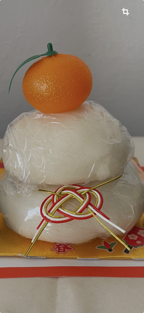 お餅の上に飾る橙は、毎年プラスチックの使いまわし、