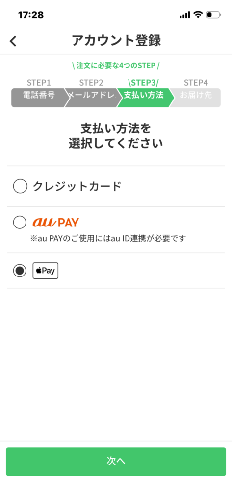 ApplePayを選択