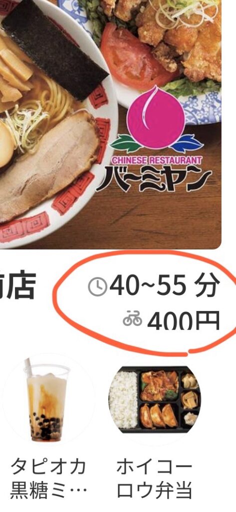 配達料は400円、自転車でお届けと表示されています。