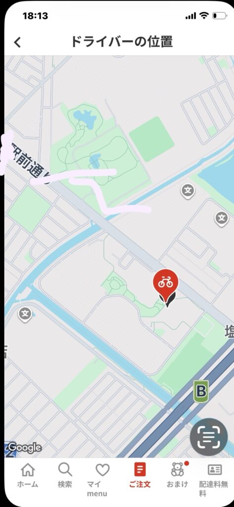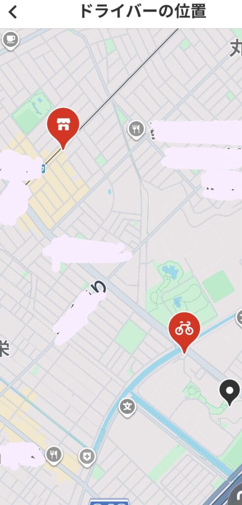 配達員がスマホ上で移動する様子を見ていると、依頼人(私)が配達する人を応援する一体感というかワクワク感も楽しめます。