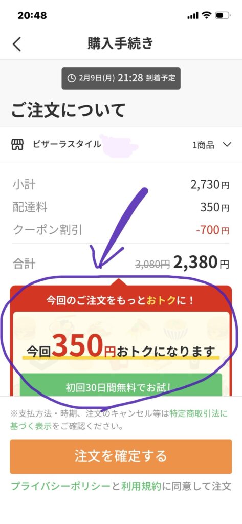 最初にクーポンコード入力したので